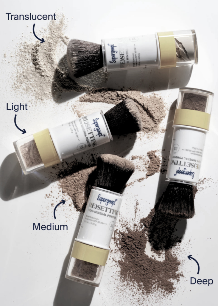If you truly cannot let go of every brush, she offers one concession: a small kabuki brush in a retractable case for setting powder. Or her favorite dual-purpose find, the Supergoop (RE)setting Powder with SPF in Translucent, which comes with its own attached brush and pulls triple duty: sets makeup, provides sun protection, and fits in a handbag for touch-ups throughout the day.